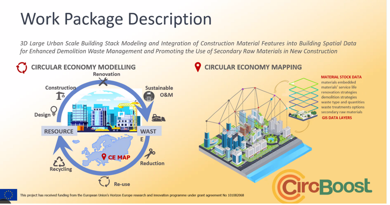 CIRC-BOOST est un projet de 4 ans (2023-2027), financé dans le cadre du programme Horizon Europe, qui se concentre sur l'expérimentation et l'extension de solutions circulaires dans les bâtiments et le secteur de la construction à travers cinq projets pilotes déployés dans différentes régions d'Europe. Les projets pilotes démontreront, à grande échelle, des solutions nouvelles et intégrées pour la démolition, le traitement des déchets de construction, la gestion et la valorisation dans de nouveaux produits.